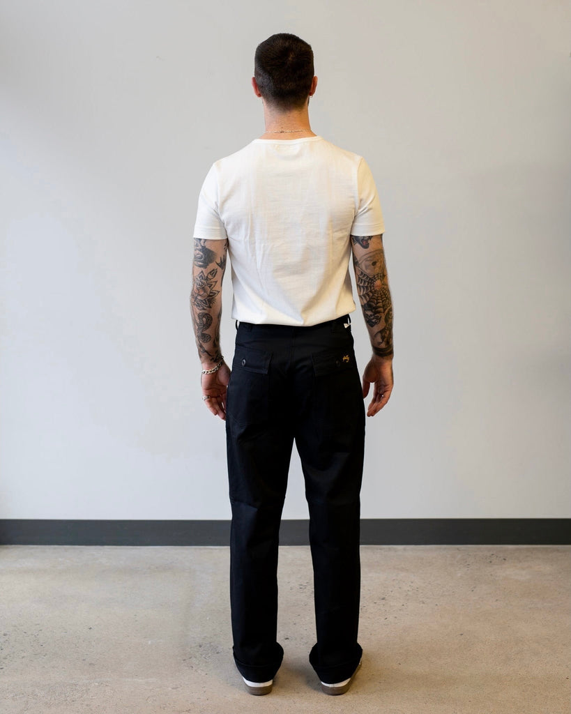 The classic Stan Ray fatigues, based off OG107 army trousers. Produced from a cotton twill, these feature a loose fit in the upper block, high rise and straight leg.