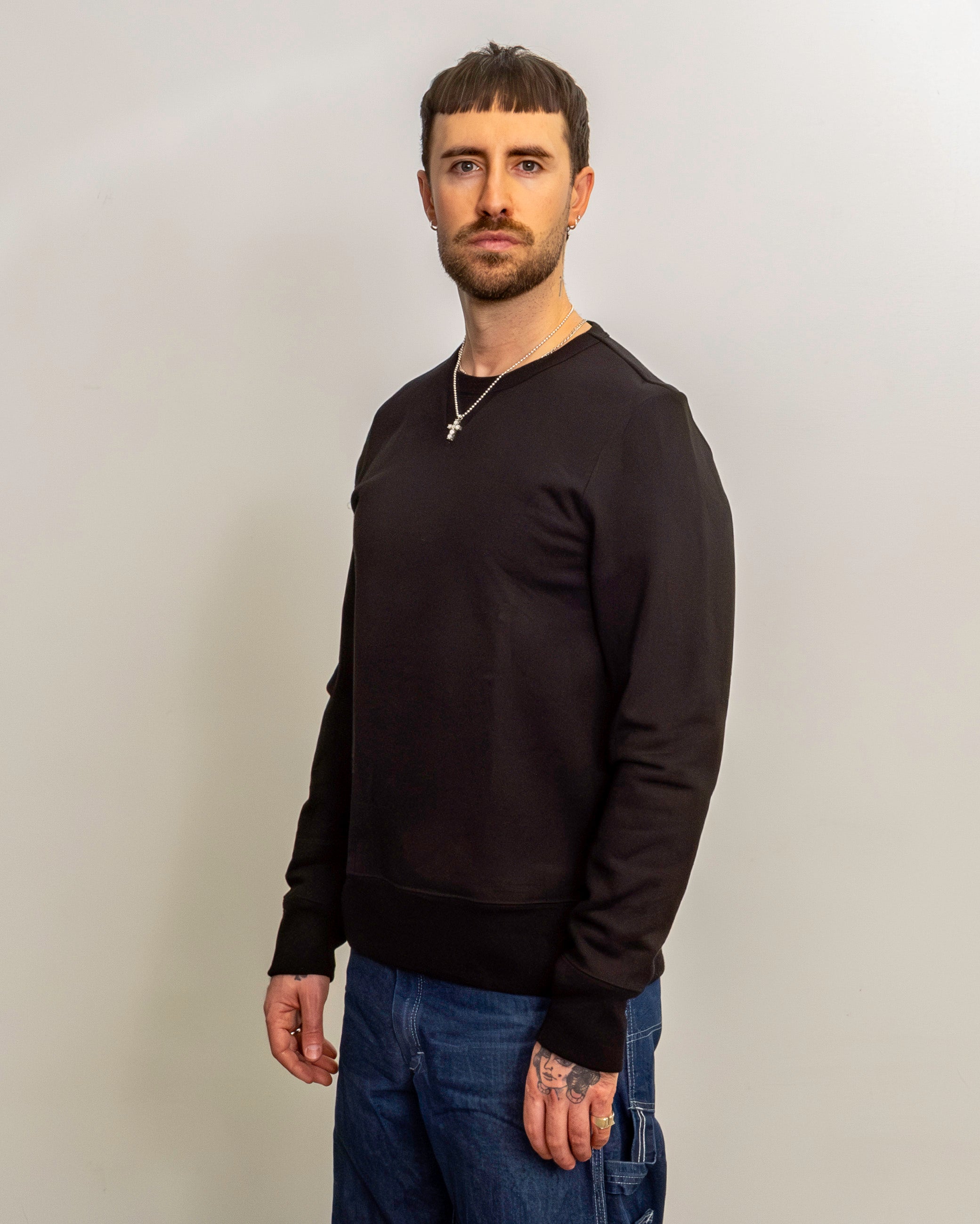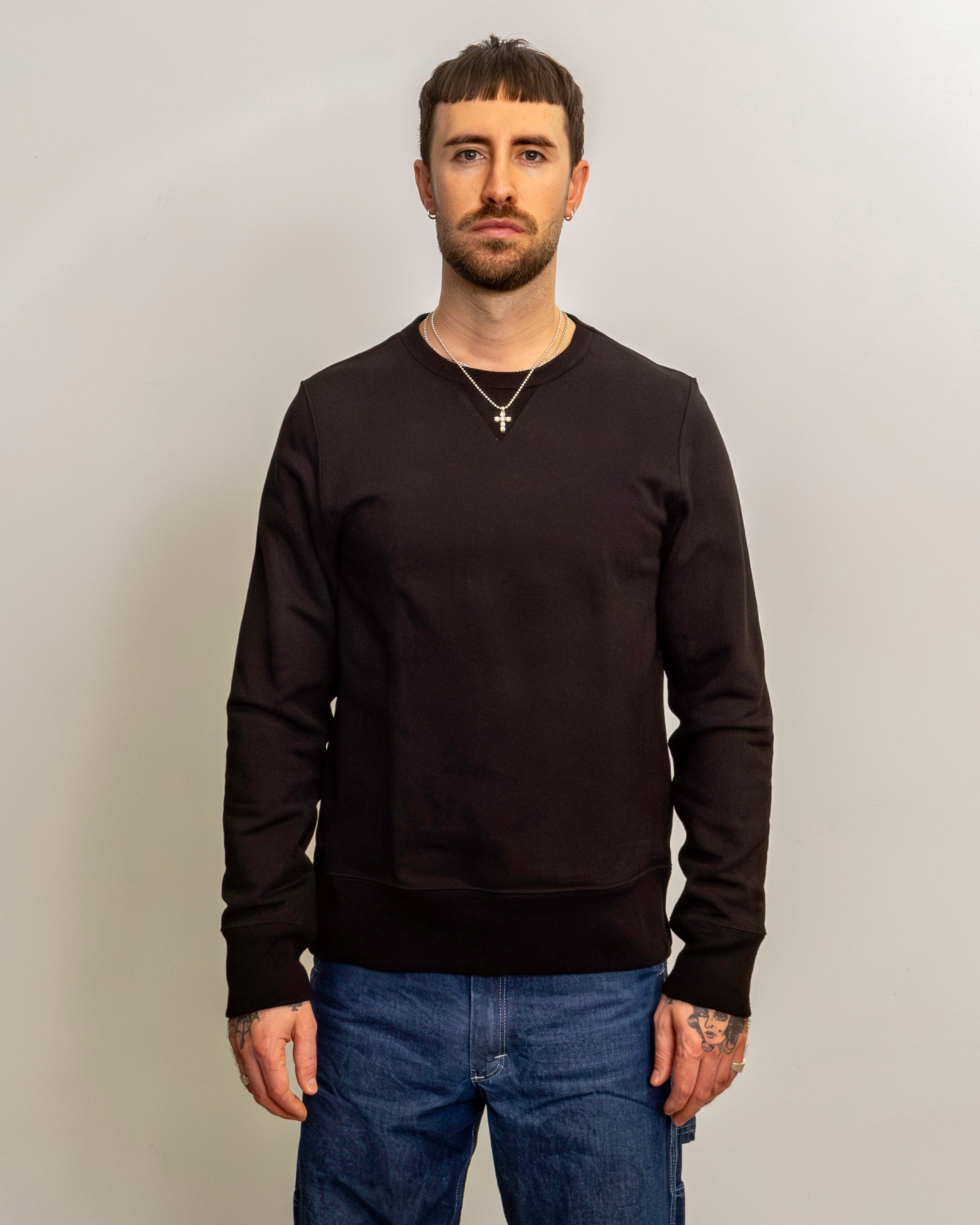Crafted from heavy 3-thread organic cotton, this Merz B. Schwanen sweatshirt offers exceptional durability and comfort. Its loopwheeled fabric ensures a sturdy yet soft feel against the skin, while the triangular inserts at the neckline and underarms provide a natural fit. The reinforced waistband adds lasting shape retention, making this deep black sweatshirt a reliable, timeless piece designed to accompany you through countless moments with ease and style.