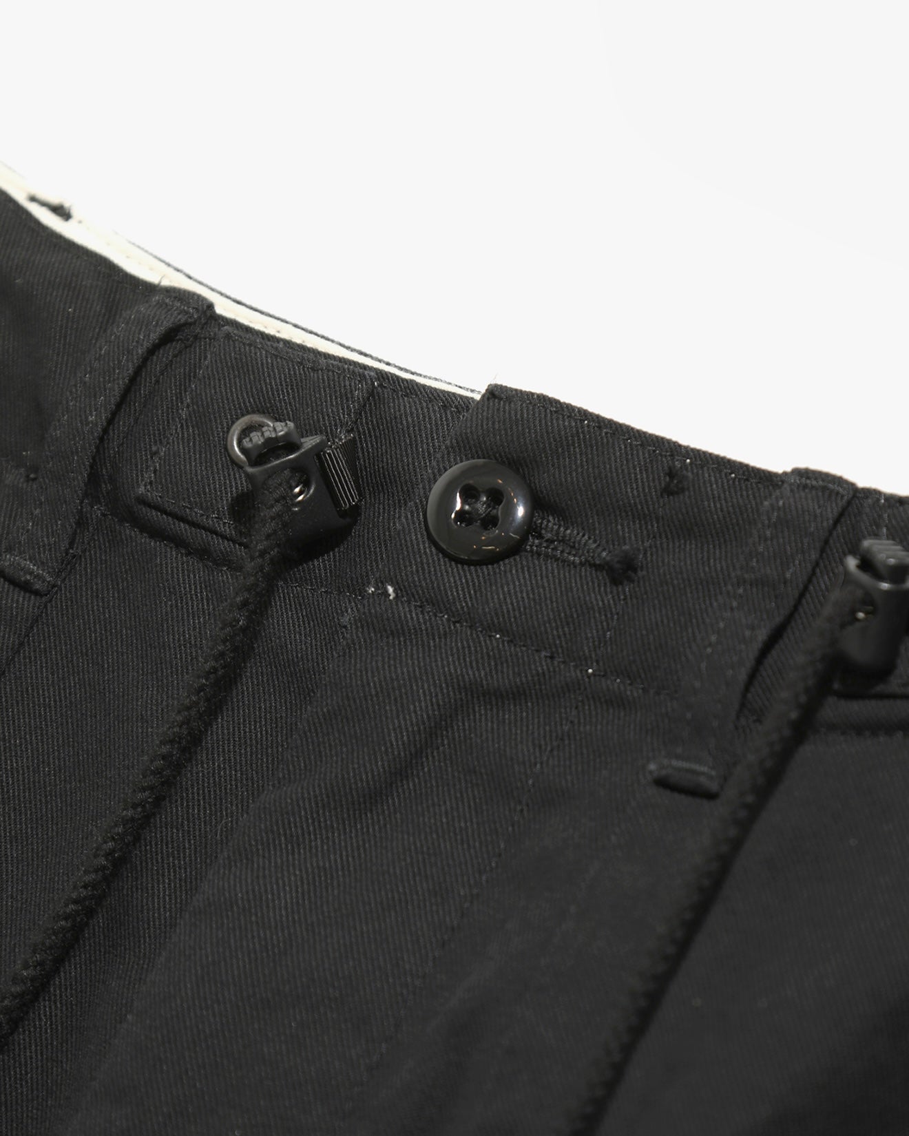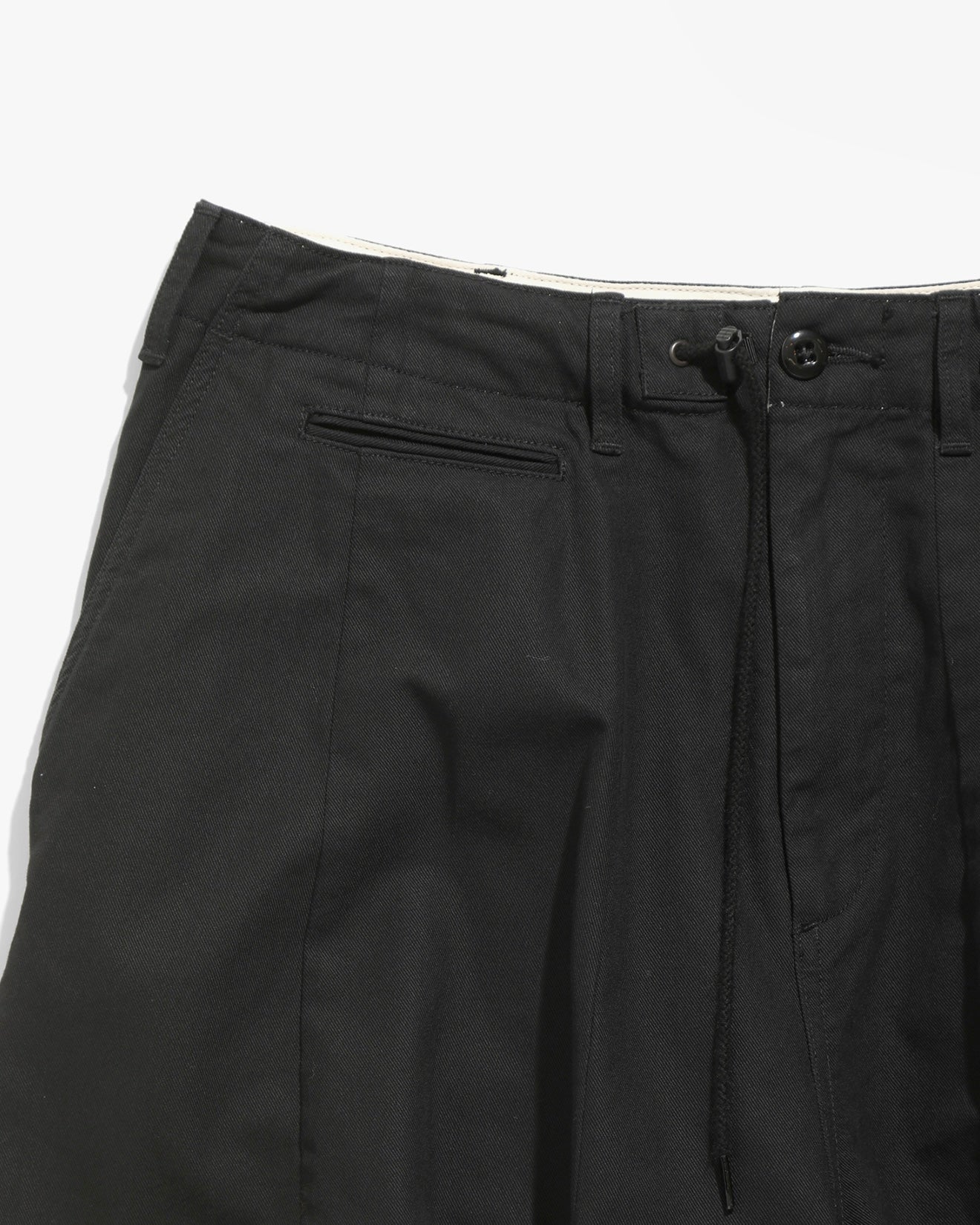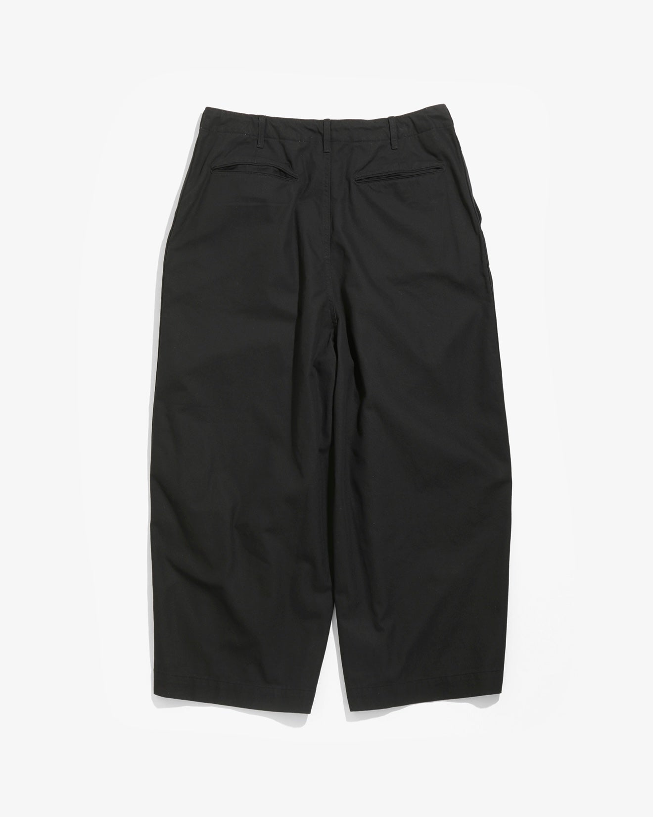 The popular H.D. pants feature a unique silhouette with a fuller front thanks to darts at the waist and hem. The relaxed, wide silhouette provides a comfortable, open fit. While they come in a variety of designs, the basic design is based on simple chino trousers.