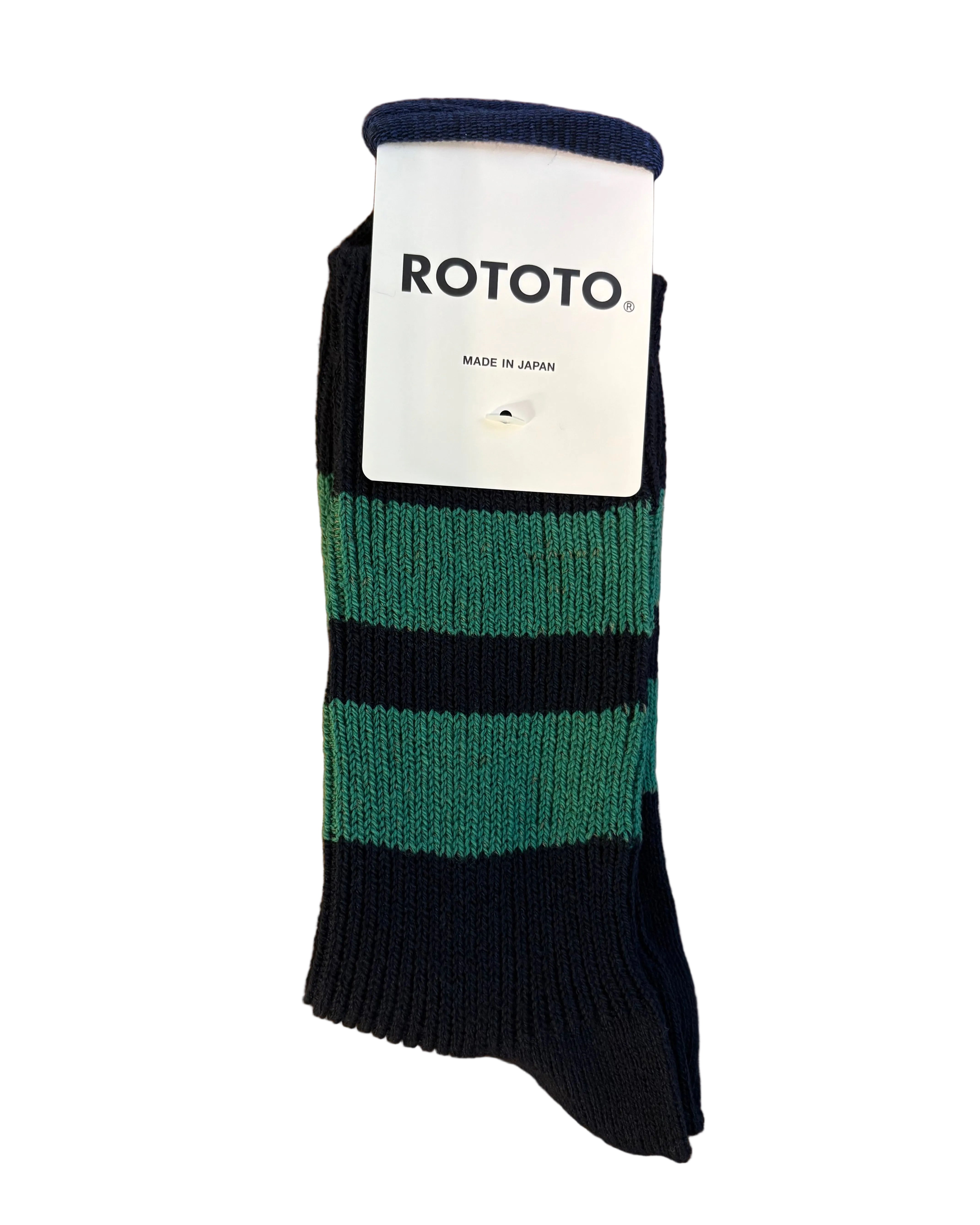 ROTOTO Recycled Cotton Stripe Socks Navy/Green